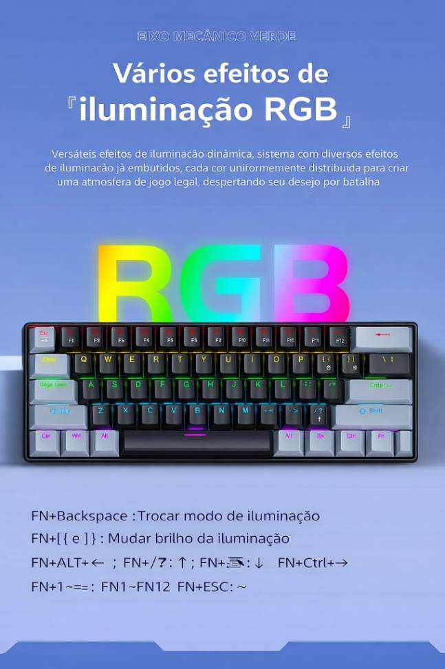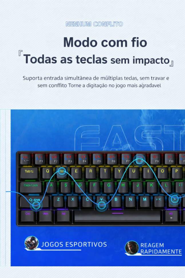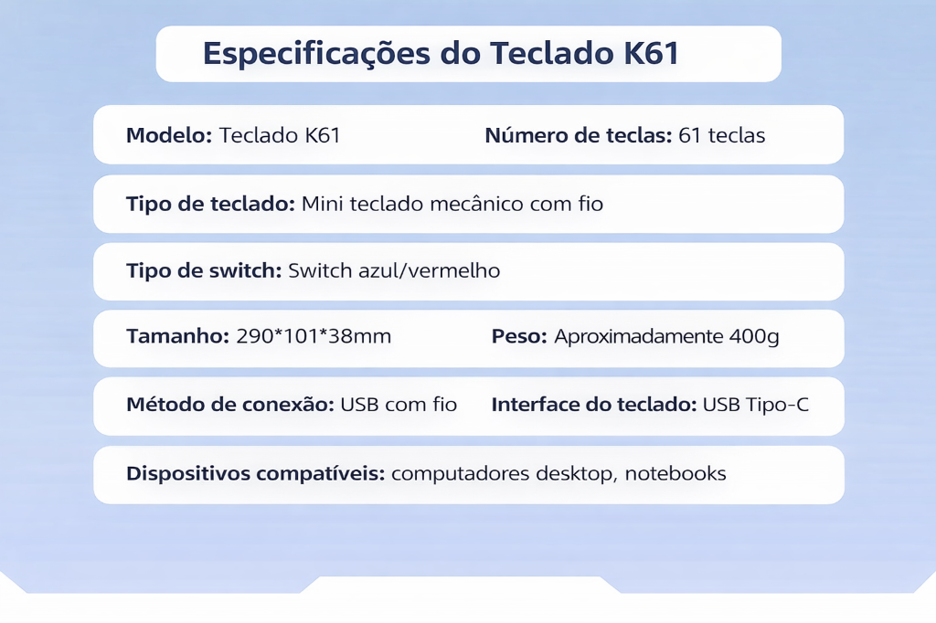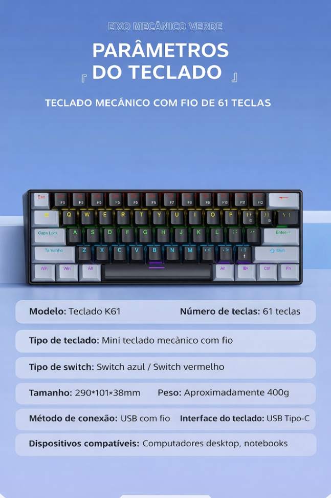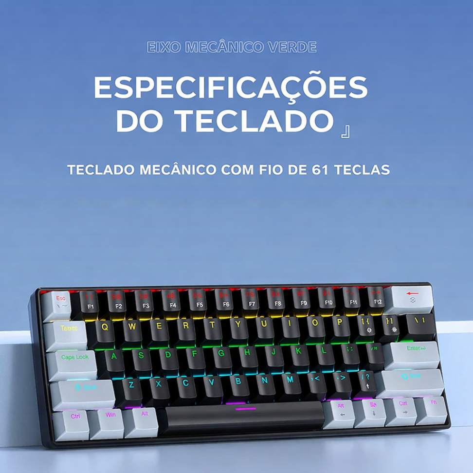 Tipo: teclado mecânico com fio K61 Mini